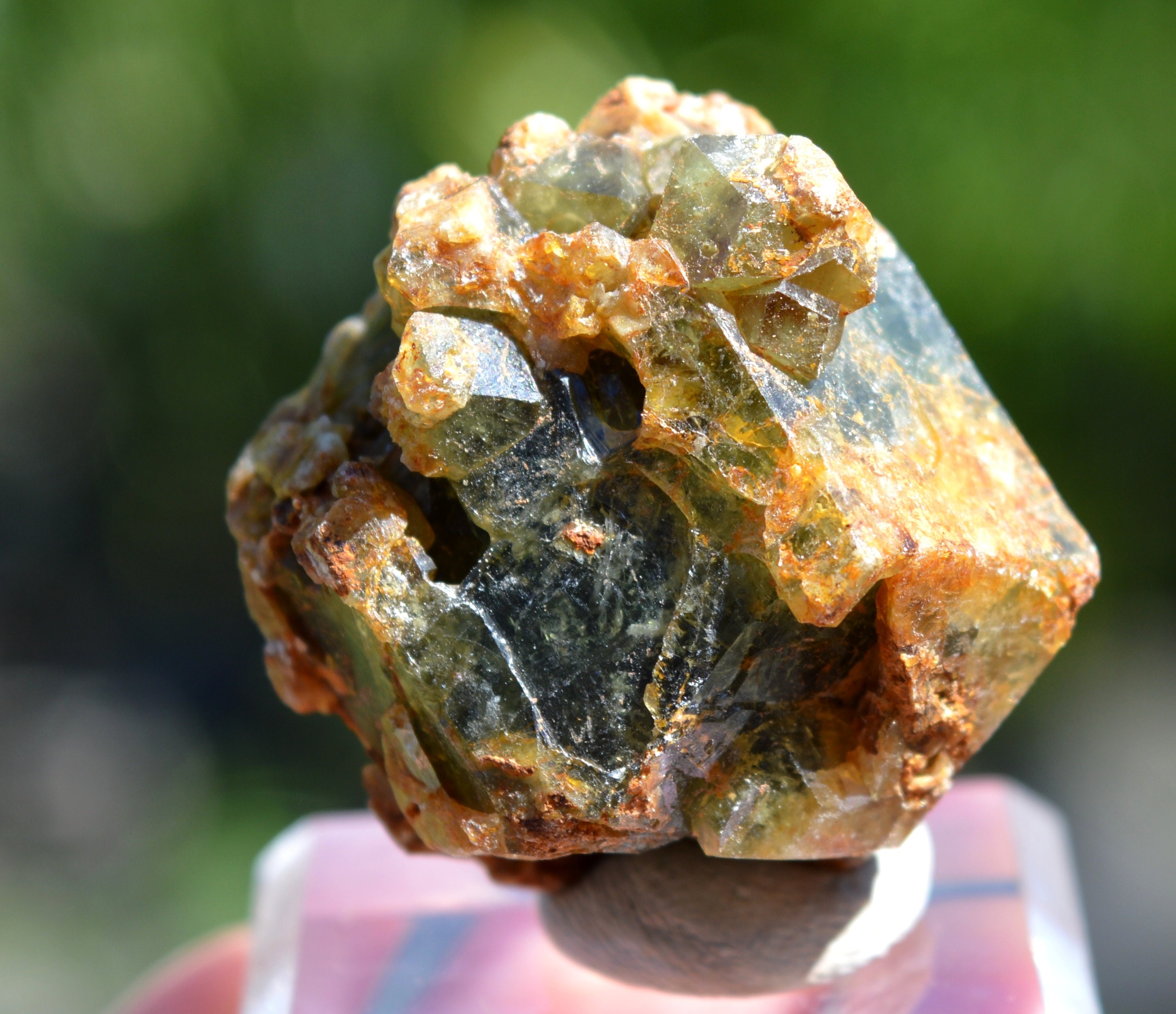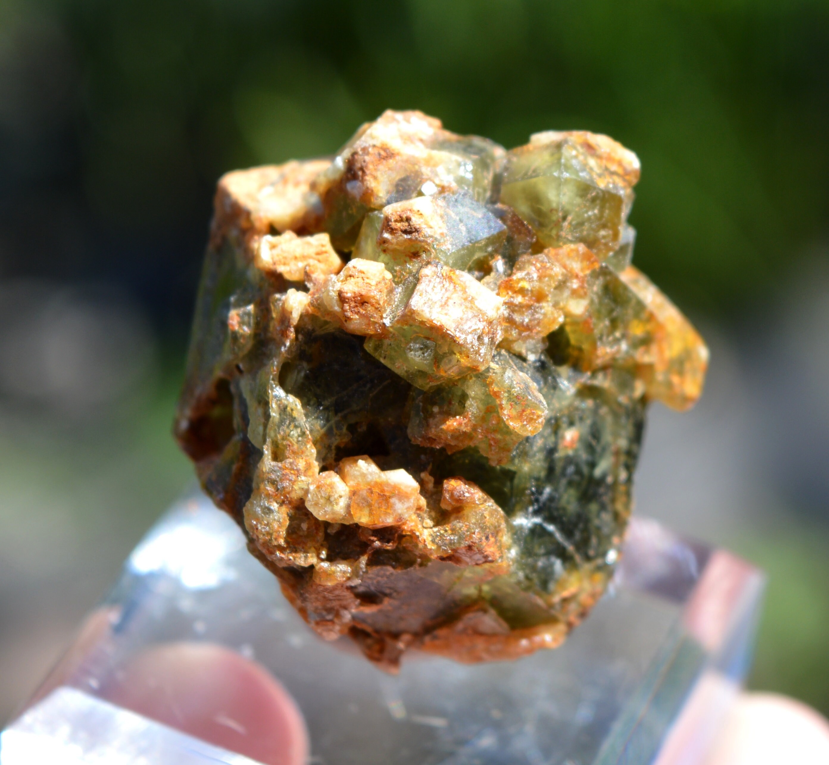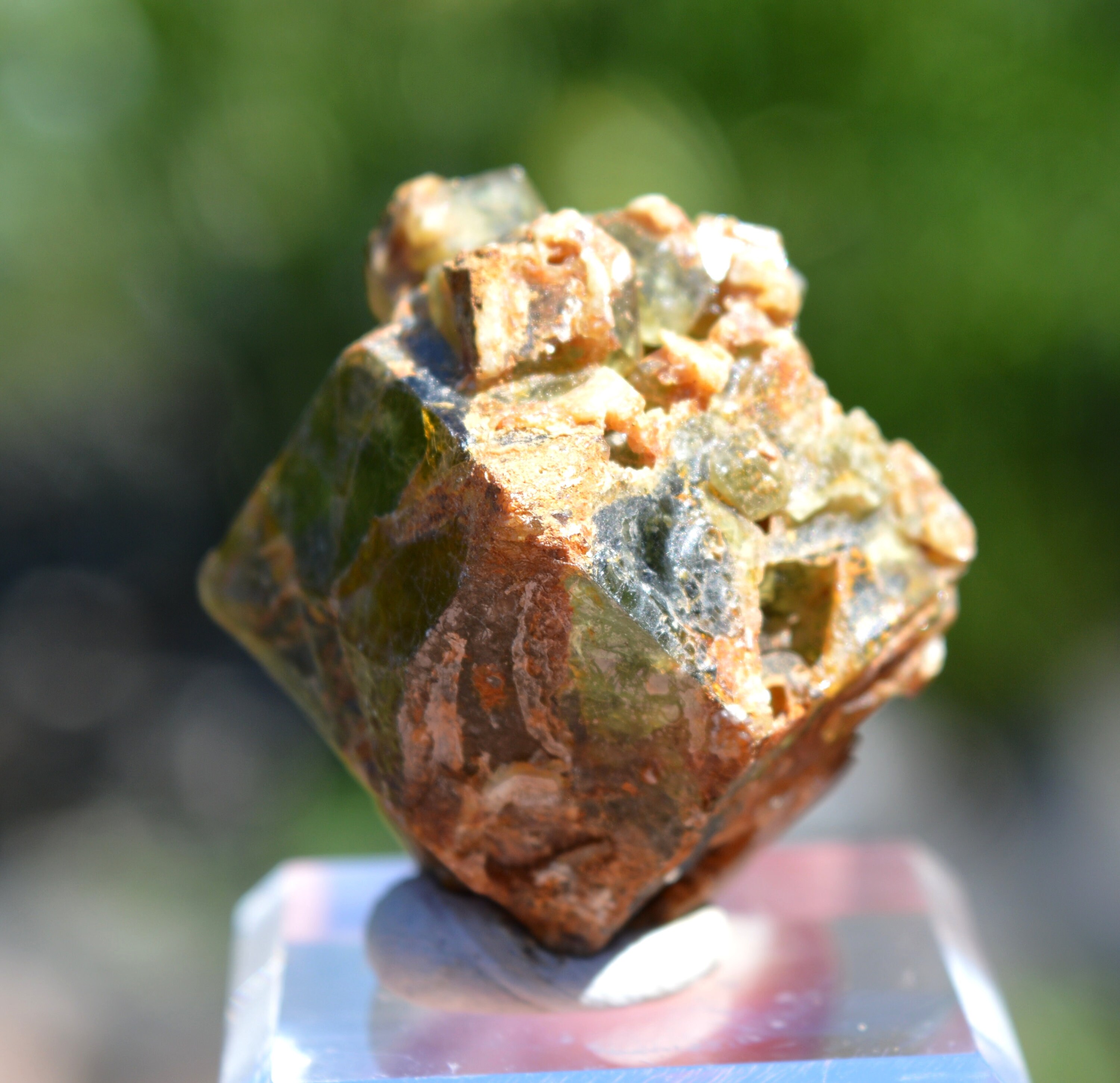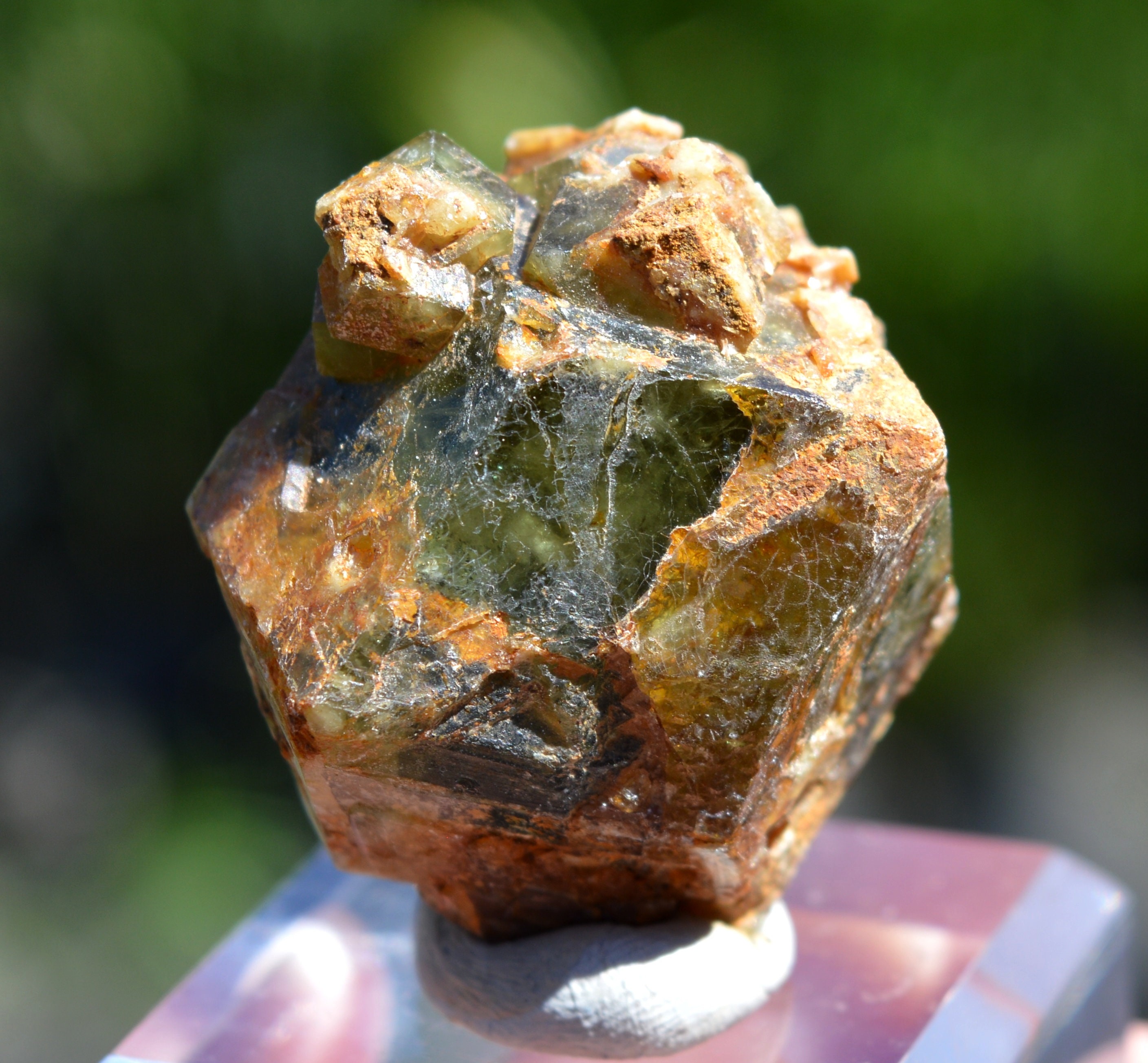 Large crystal of grossular, covered with smaller crystals well green.