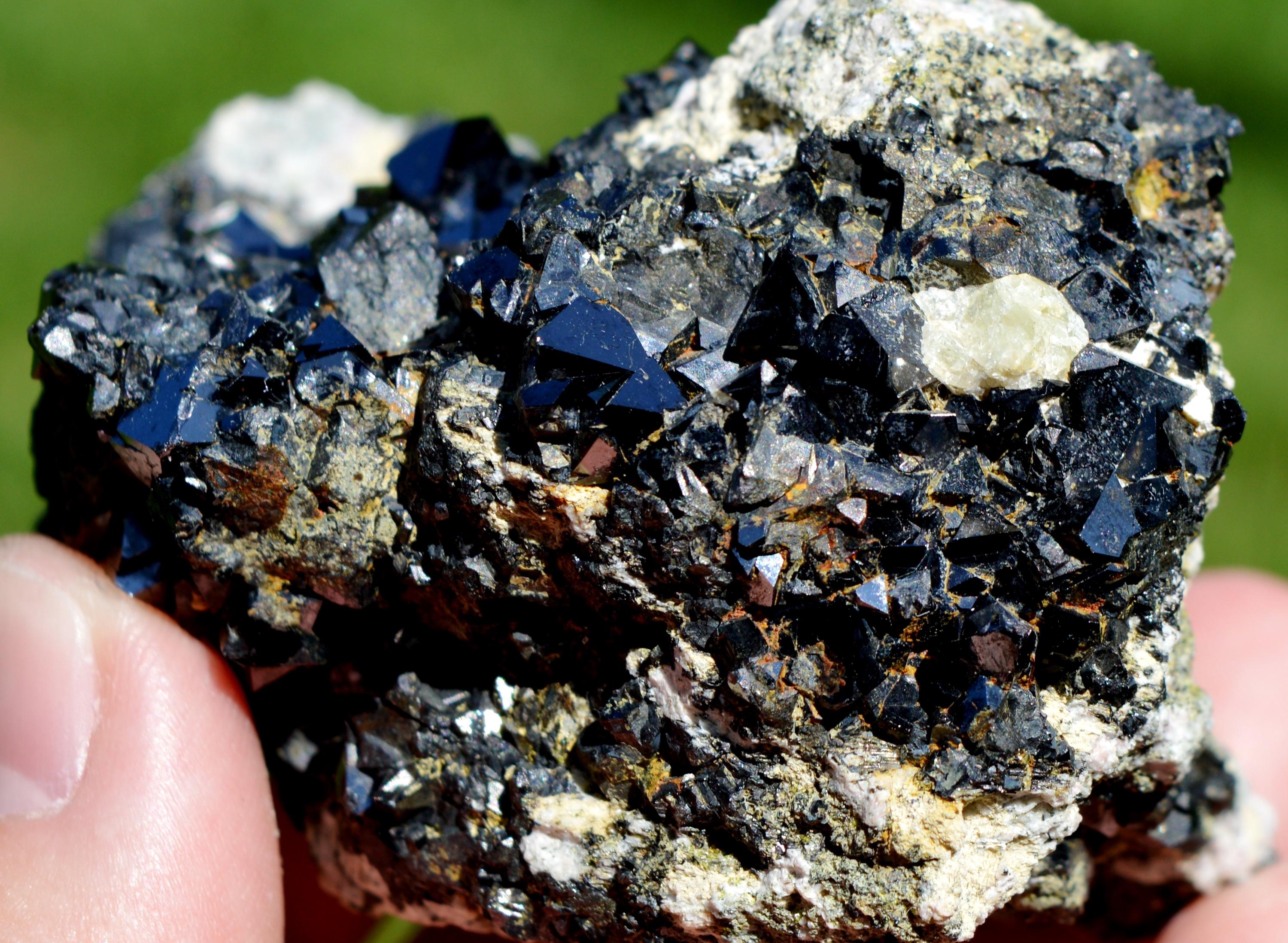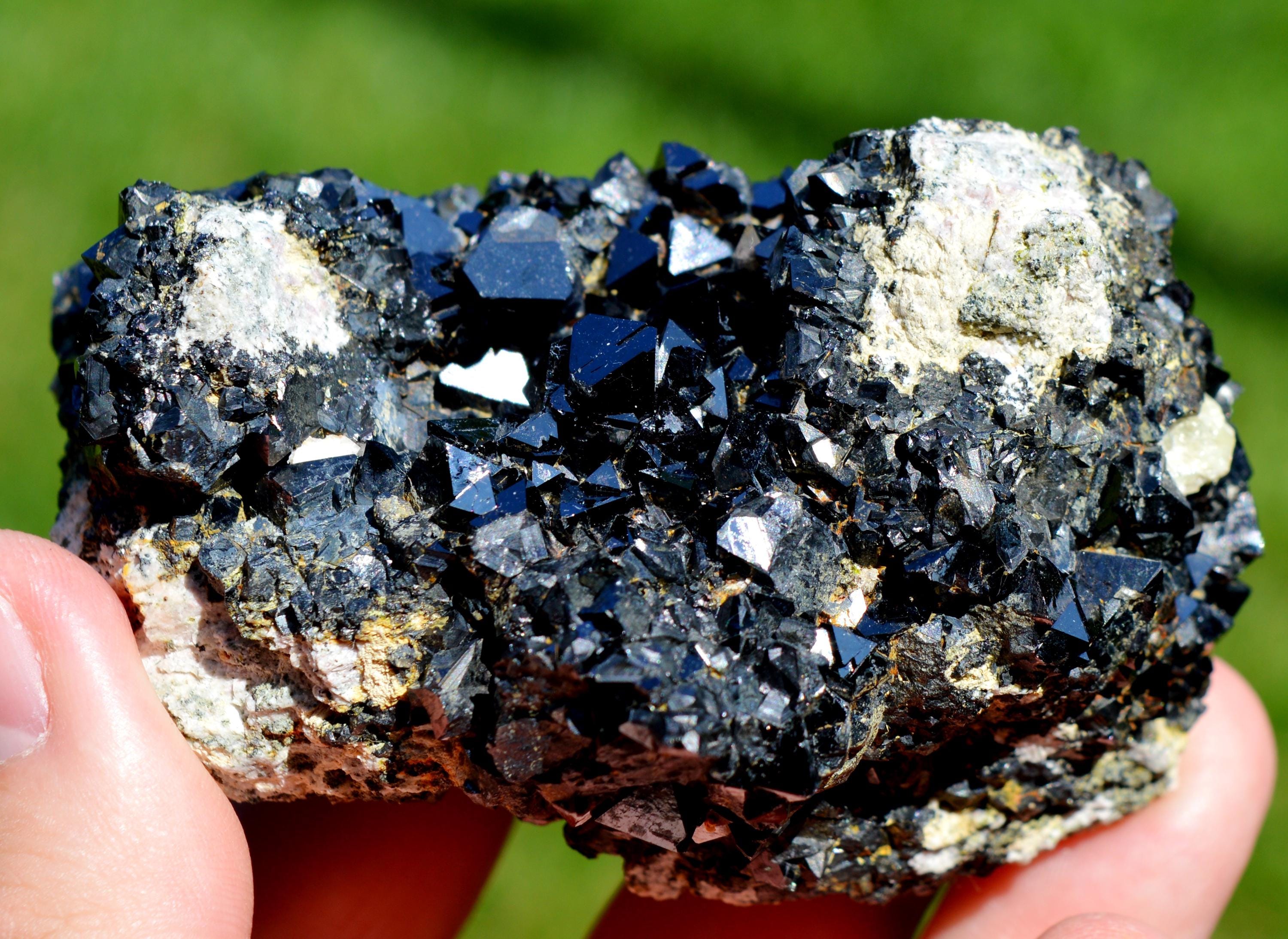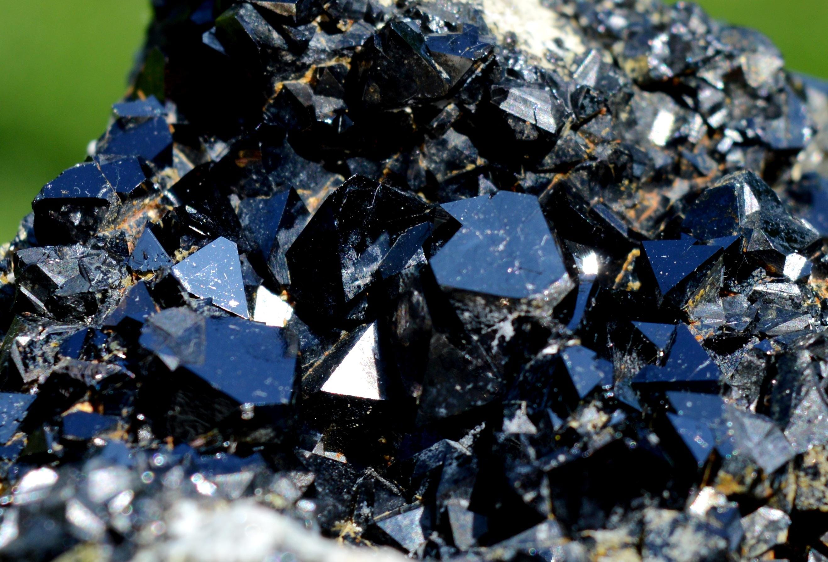 Multiple very shiny magnetite crystals, much better in real life.