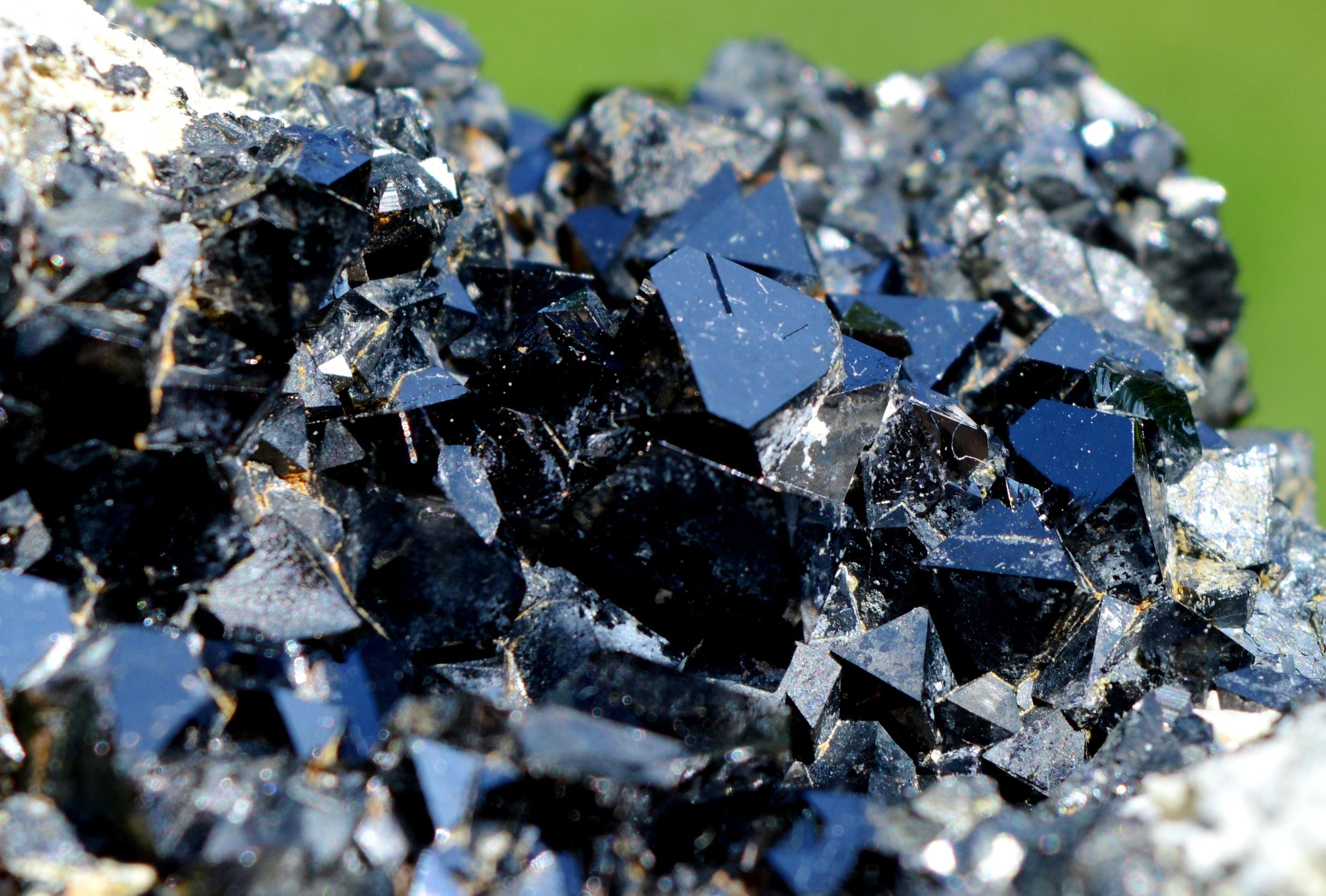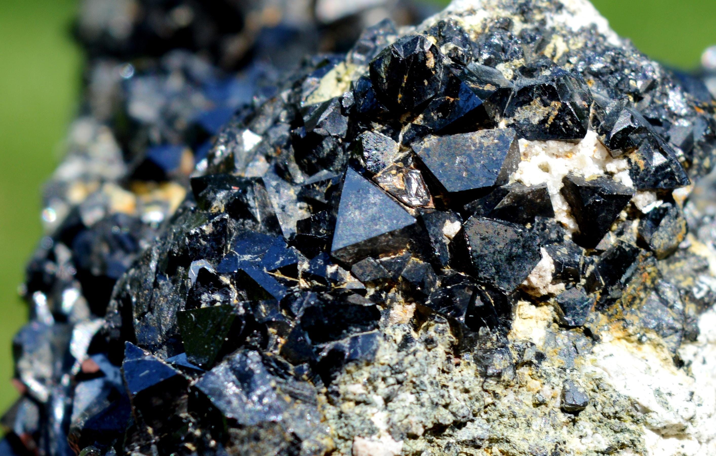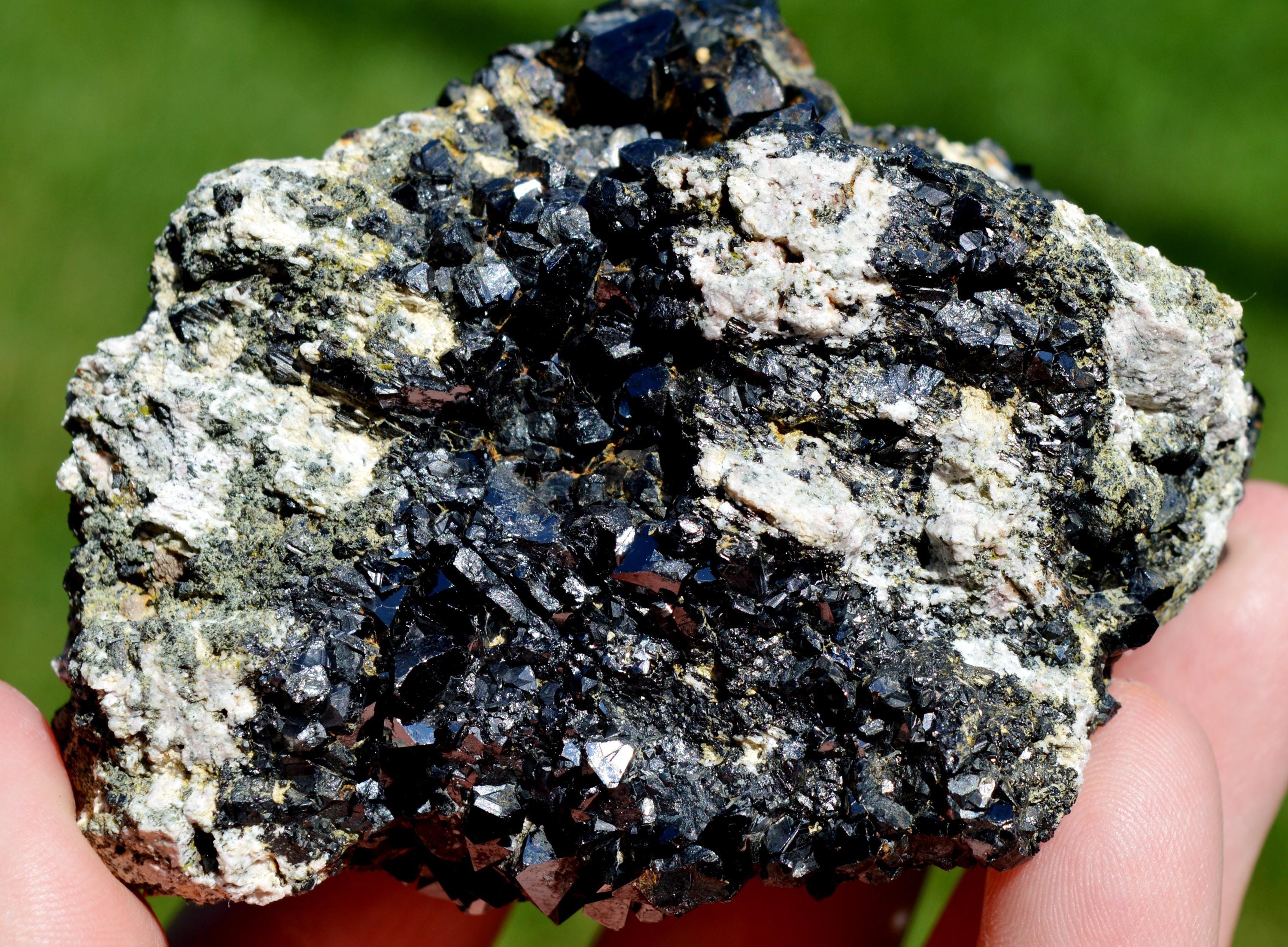 Multiple very shiny magnetite crystals, much better in real life.