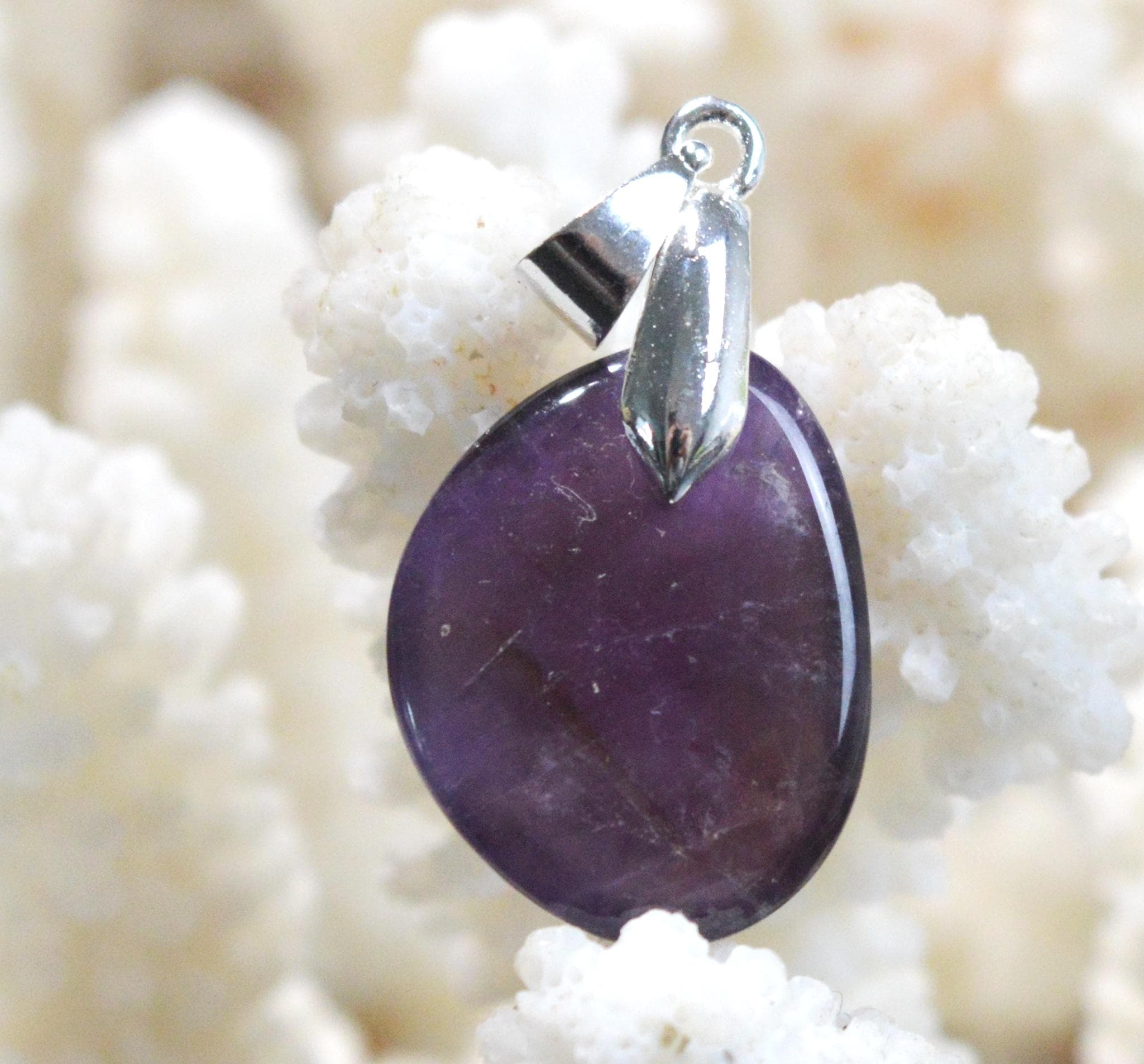 La pierre améthyste a aussi pour propriété en lithothérapie d’être une pierre de passage et d’être une pierre qui comprend la séparation. Elle peut être utilisée en cas de perte d’un proche, aussi bien pour celui qui s’en va que pour celui qui reste. Une grande propriété et vertus de l’améthyste est de purifier les lieux et les objets, que ce soit par le biais d’une boule améthyste ou encore sous une autre forme. Elle purifie le corps physique mais aussi l’aura. Elle accepte et intègre parfaitement les nouveautés, les changements. Elle sert aussi à nettoyer, purifier et recharger les autres pierres et minéraux. L’idéal est de procéder à cette purification avec un tapis d’améthyste ou une géode d’améthyste.