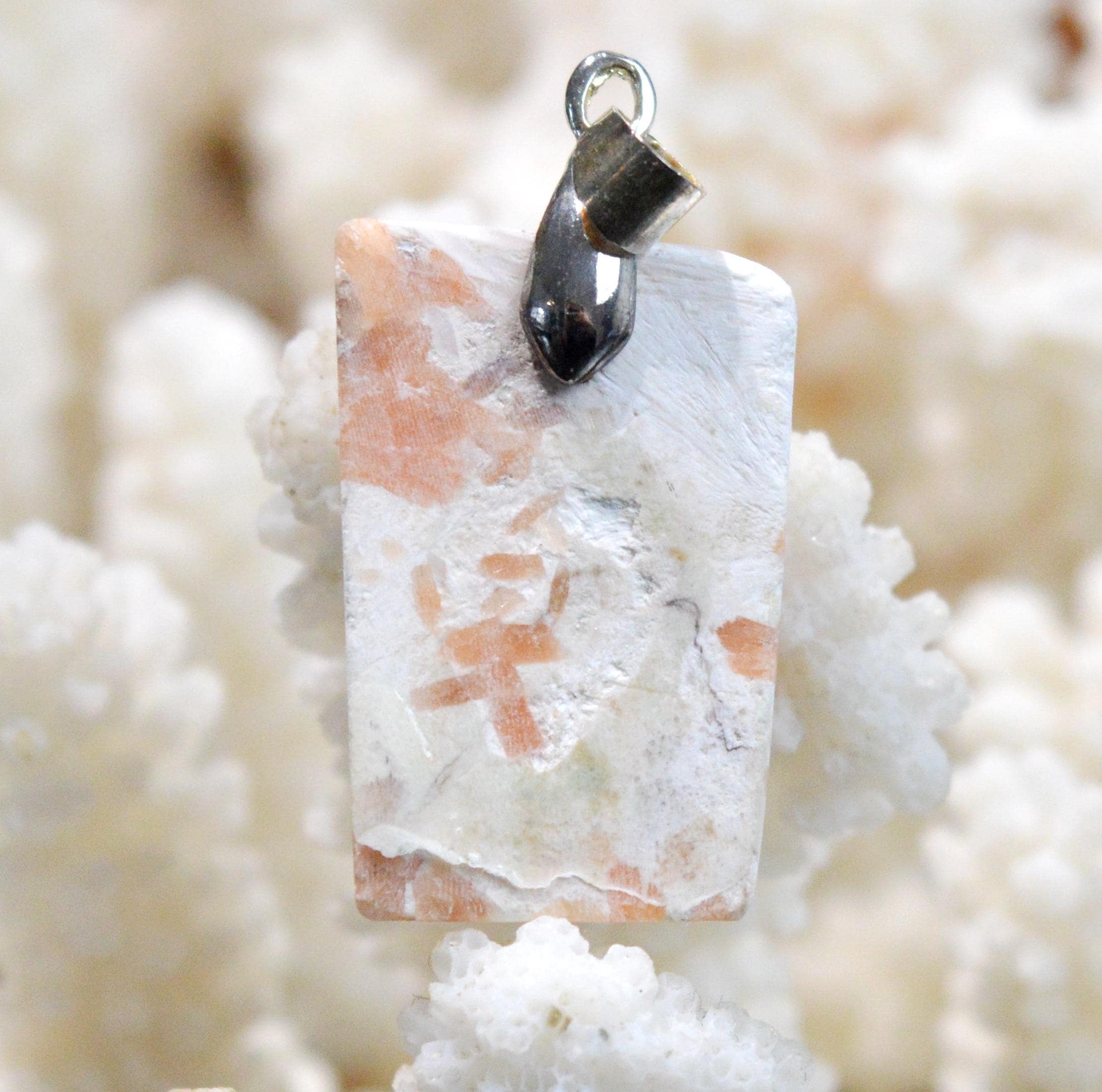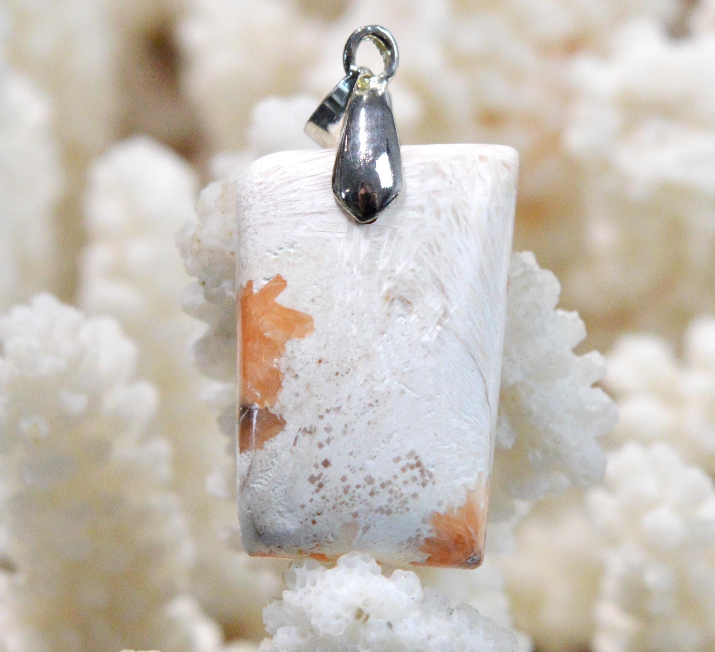 Due to its ability to energetically maintain good functioning of our cardiovascular and cerebral systems, wearing scolecite is recommended for stroke prevention, pancreatic regeneration, spinal realignment, vision improvement, and intestinal balance.