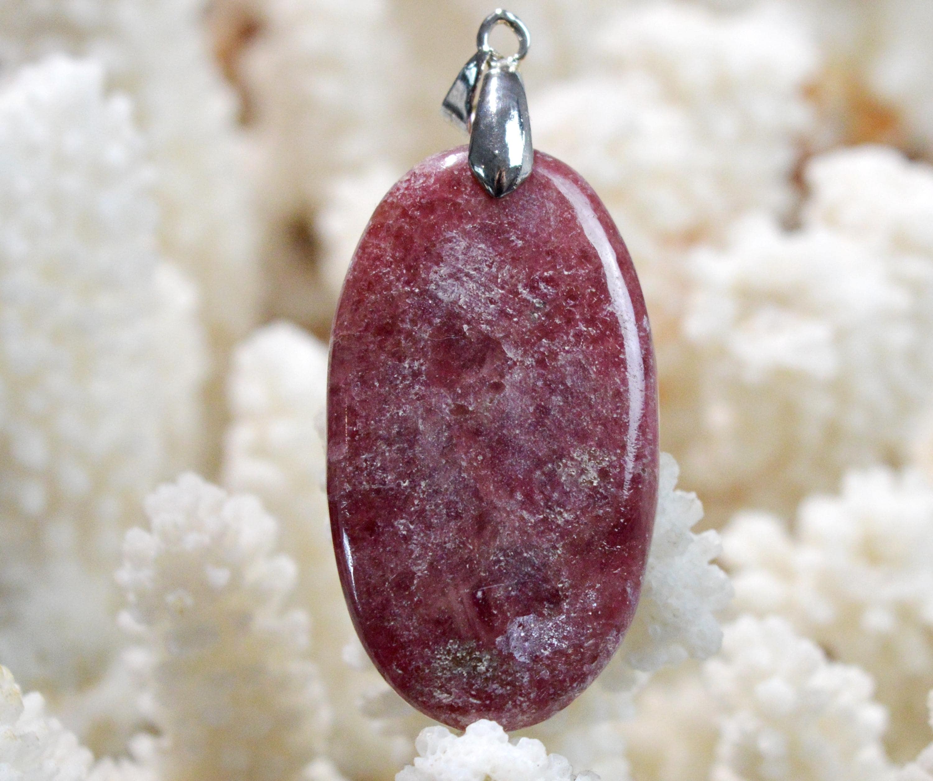 Rhodonite is widely used in crystal healing for several reasons. On a psychological and spiritual level, it offers numerous benefits, particularly in cases of excessive fear and in matters of love and relationships.