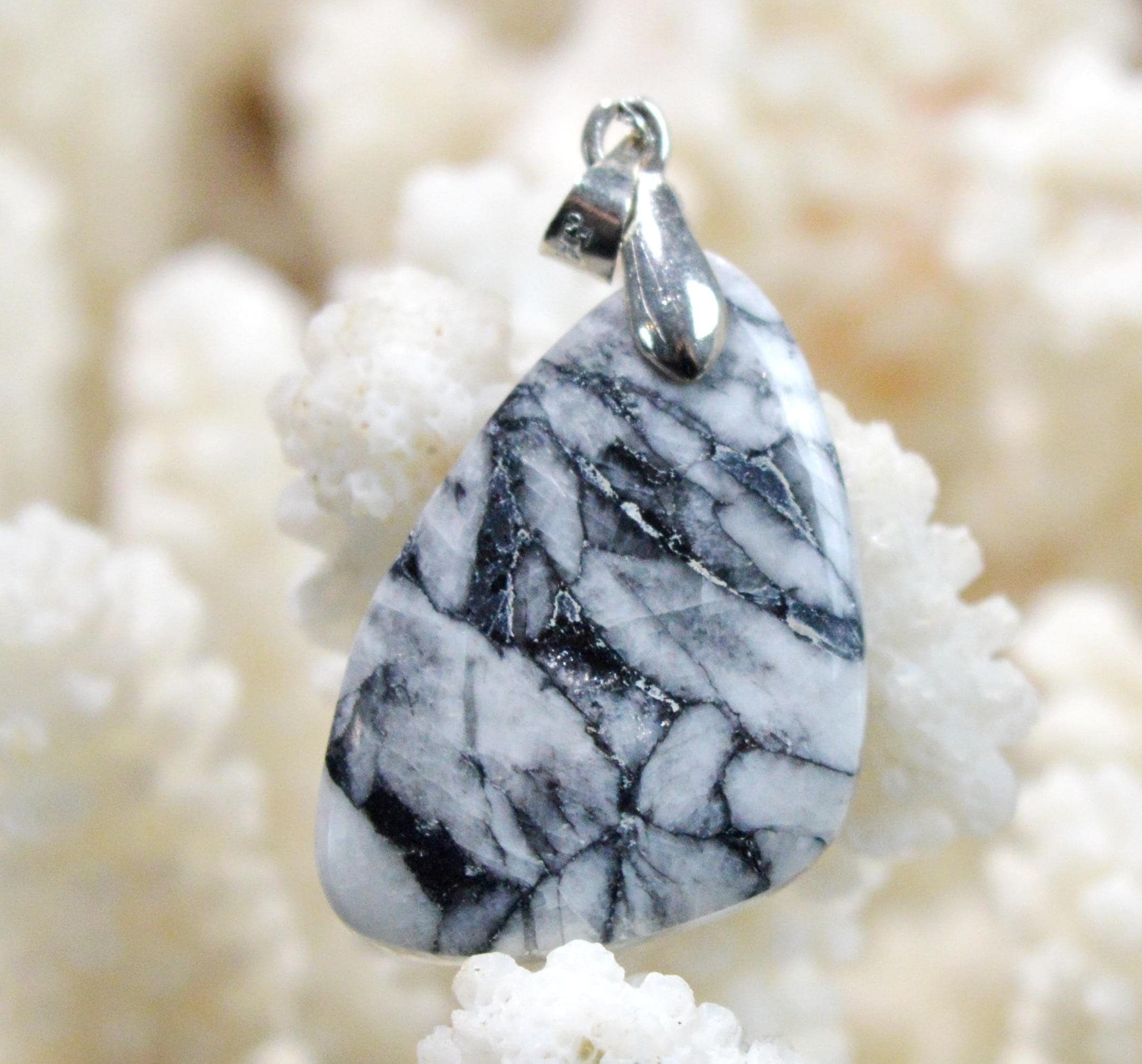 A stone of calming, pinolite can be used to stabilize the aura and prevent the dissipation of bodily energies. It is very effective in alleviating feelings of loneliness and anxiety. It has the power to channel anger and excessive emotions, and it also brings strength and stability on both a mental and physical level. As a stone that promotes the flow of vertical energies from the earth to the sky, pinolite is beneficial to all the chakras.