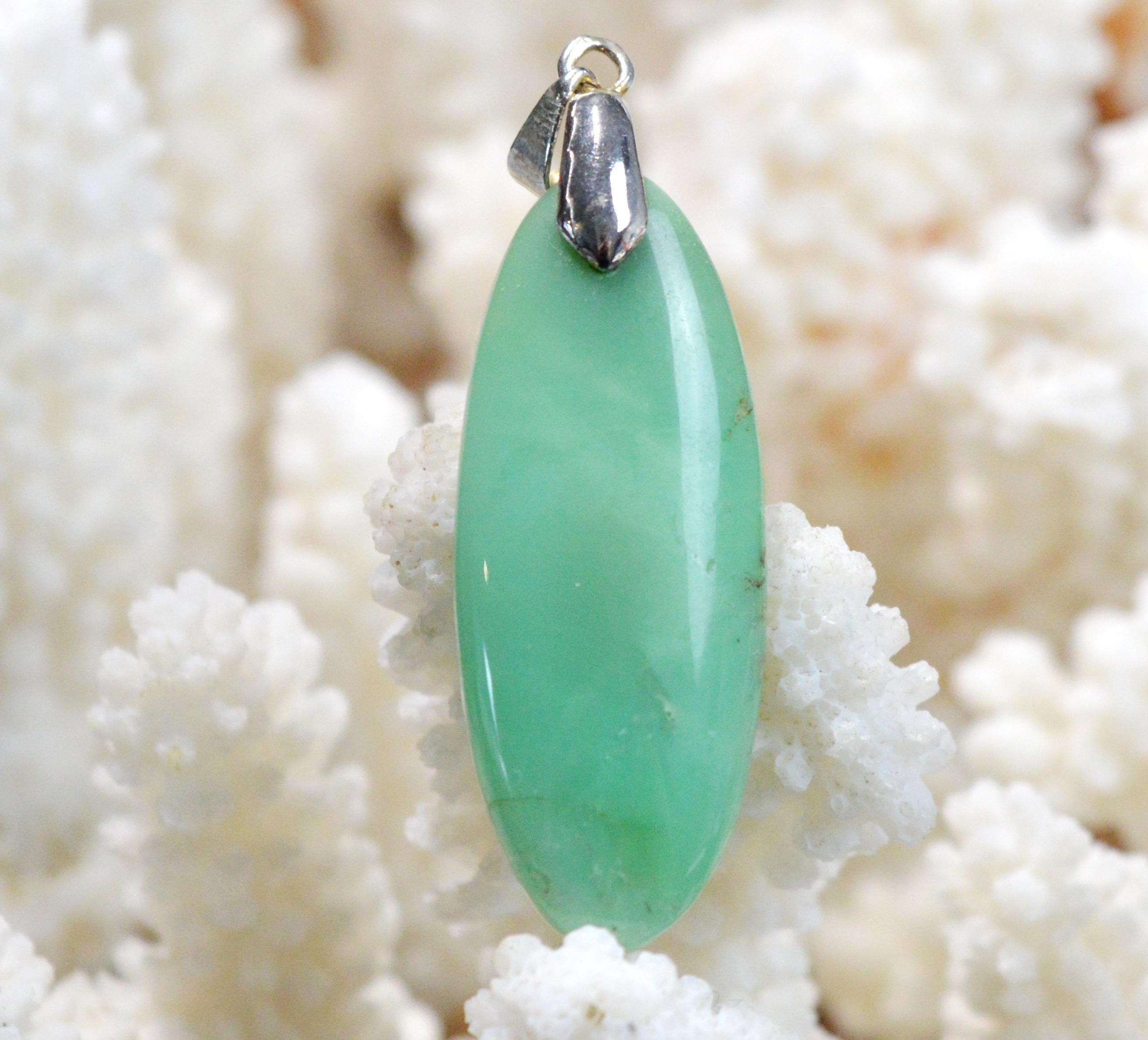 Furthermore, on a psychological and spiritual level, chrysoprase is recognized as a liberating stone: this can be justified insofar as it frees the mind from anything that might hinder its natural development. It is said to restore courage to people prone to doubt or a lack of self-confidence, while offering new perspectives: creativity and inspiration often result. It is also recognized for its beneficial effects on hypertension and stress, as it aids concentration and relaxation. This is undoubtedly why it is considered the stone of maternal love: thanks to its ability to channel positive feelings such as love and tenderness.