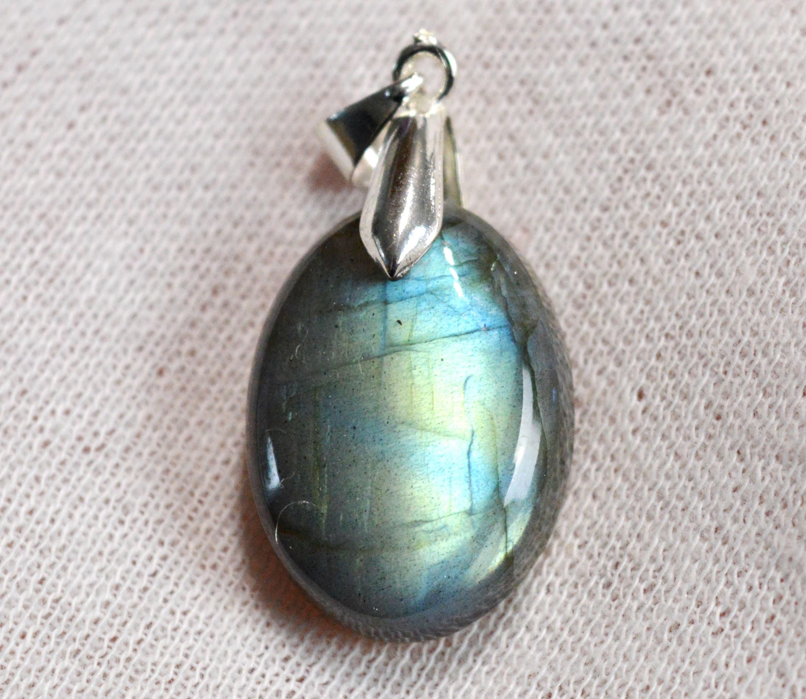 Wearing labradorite jewelry, such as a pendant, against the skin enhances one's attractiveness to others. This stone is therefore highly recommended for those suffering from loneliness. Labradorite is known for its regenerative properties, both physically and mentally, following periods of exhaustion. The aura thus regains harmony and balance through the stone.