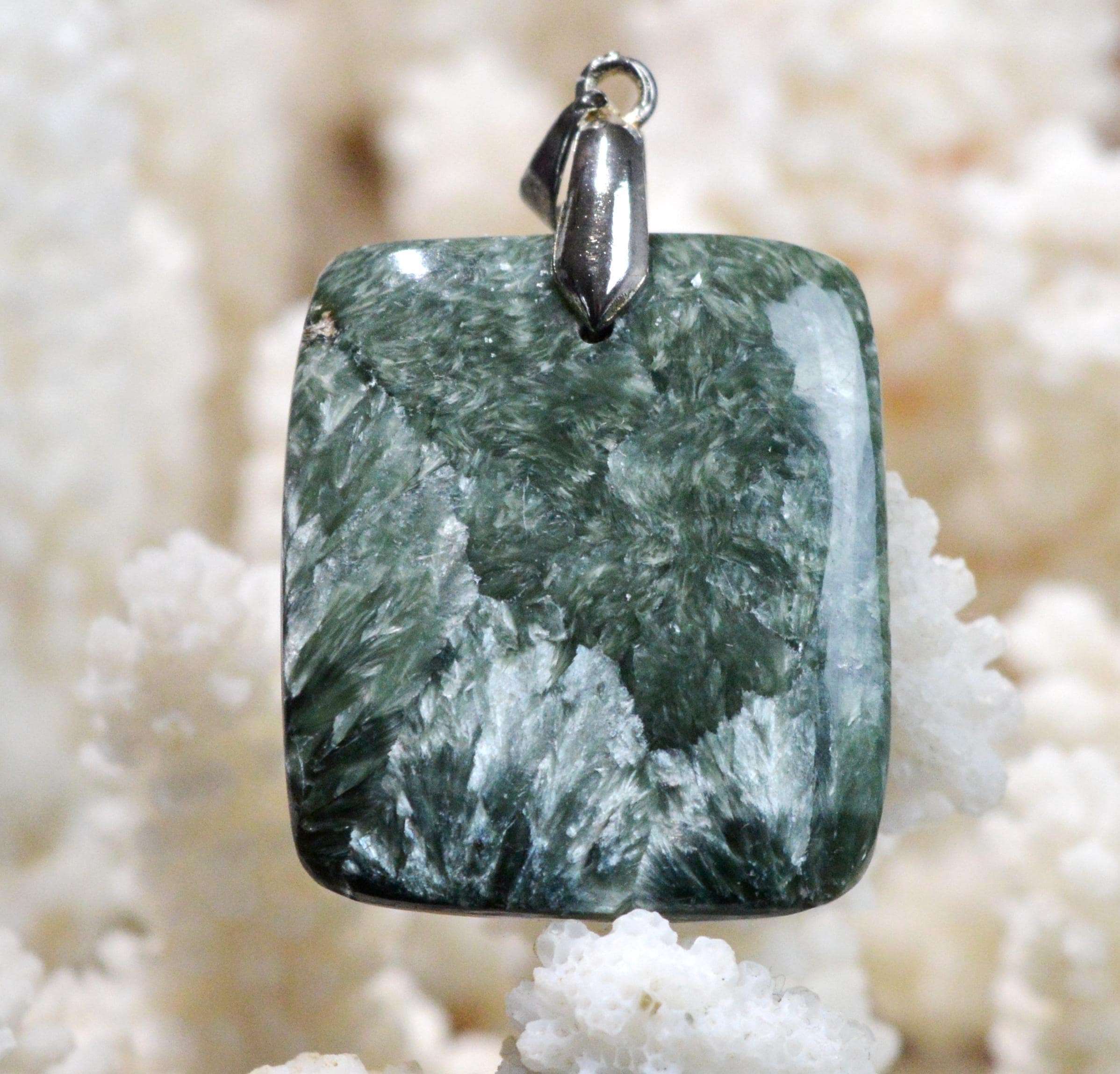Seraphinite is a stone of spiritual enlightenment that opens the crown chakra and the transpersonal chakra.