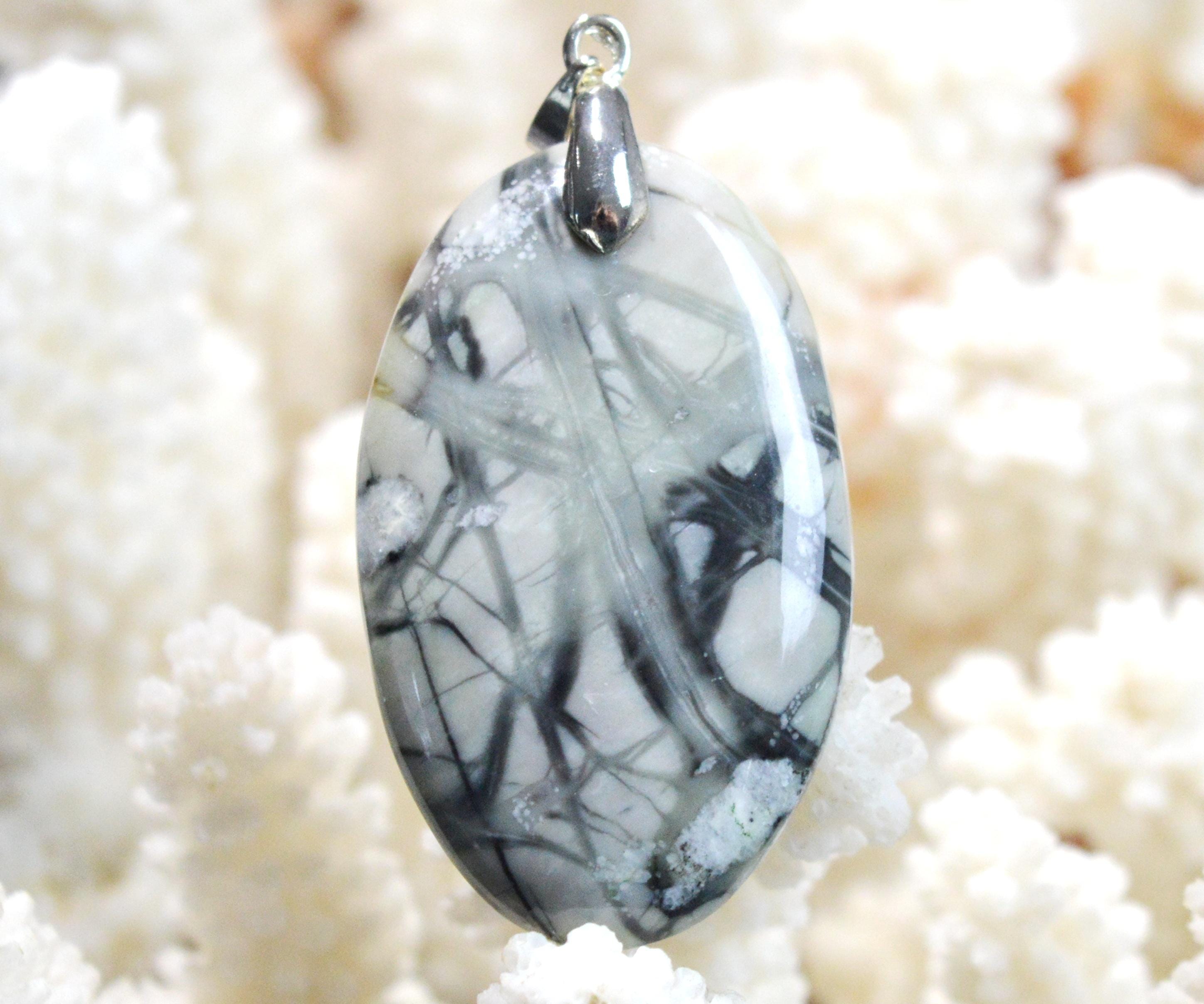 Picasso jasper, also called Picasso marble, is a rock formed by the sedimentation of several layers of crystalline materials and sometimes even clay. The stone is composed of limestone containing calcium carbonate. Like all jaspers, Picasso jasper is characterized by a high silica content, reaching up to 95% of its total composition. Picasso jasper is characterized by various shades of gray nuanced by black, beige, brown, red, or blue streaks or spots. The mineralogical characteristics of the stone remain common to jasper, with a scaly to conchoidal fracture. Picasso jasper has a trigonal crystal system, a density of 2.75, and a hardness of 6.5 to 7 on the Mohs scale.