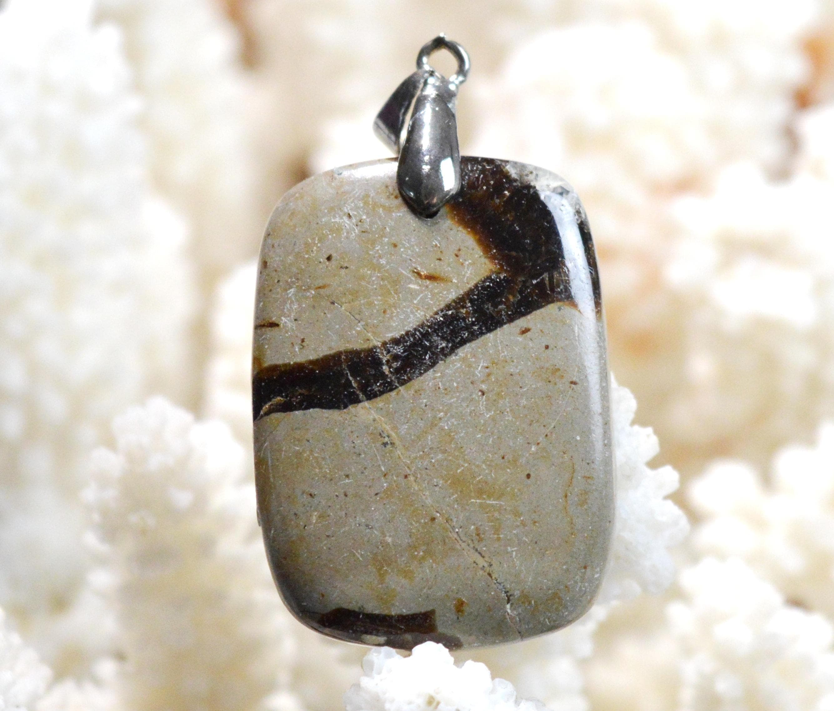 The reassuring feeling it evokes leads to a profound sense of self-control which, combined with the stone's ancient power, allows one to confront the demons of the past, finally taking back control of their life and dedicating themselves to the future. Furthermore, as Septaria is a grounding stone, it brings patience and tolerance and fosters connections with the outside world. Because it instills assurance and self-confidence, Septaria is the perfect ally for the shy and anxious!