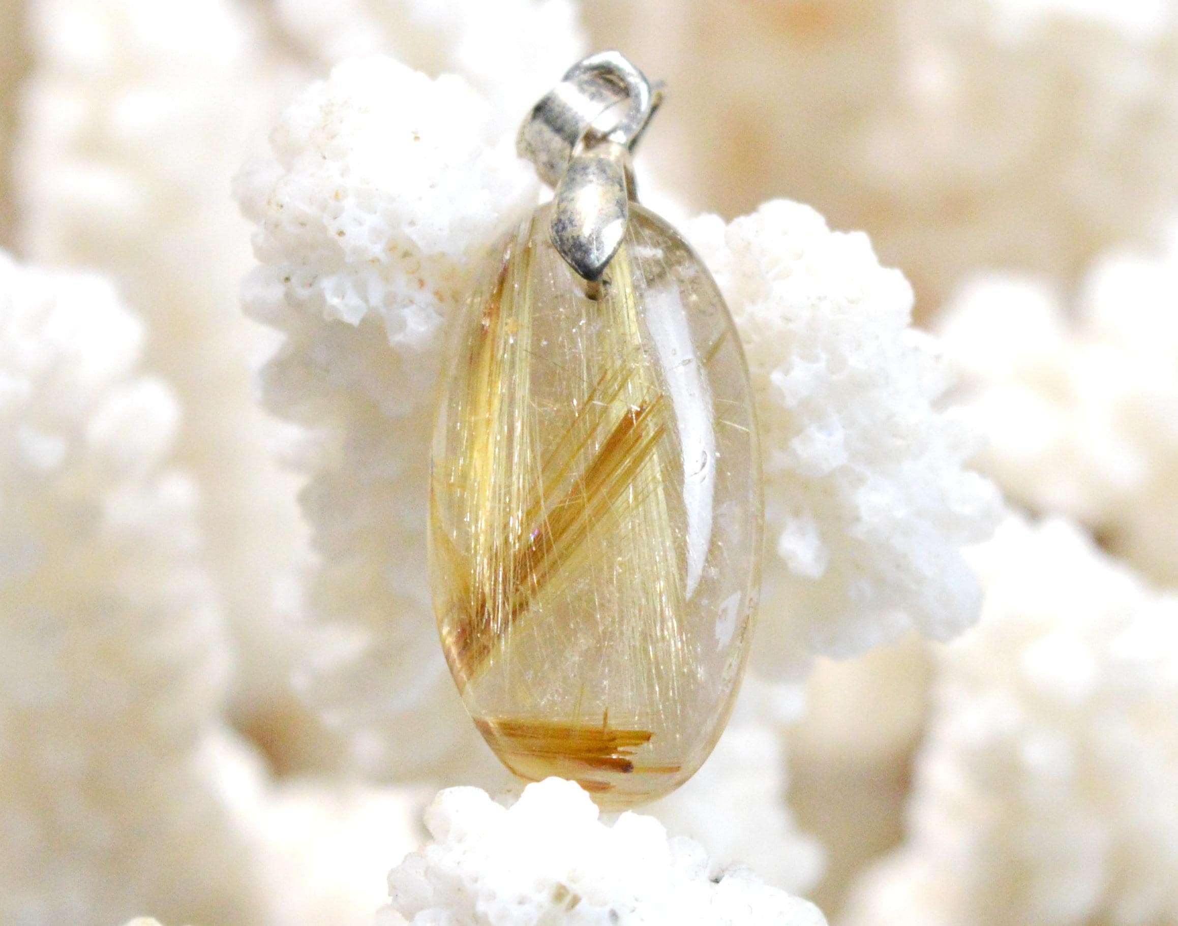- Rutilated quartz protects us from unwanted powers, encourages our spiritual growth, and brings us calm, warmth, and harmony.