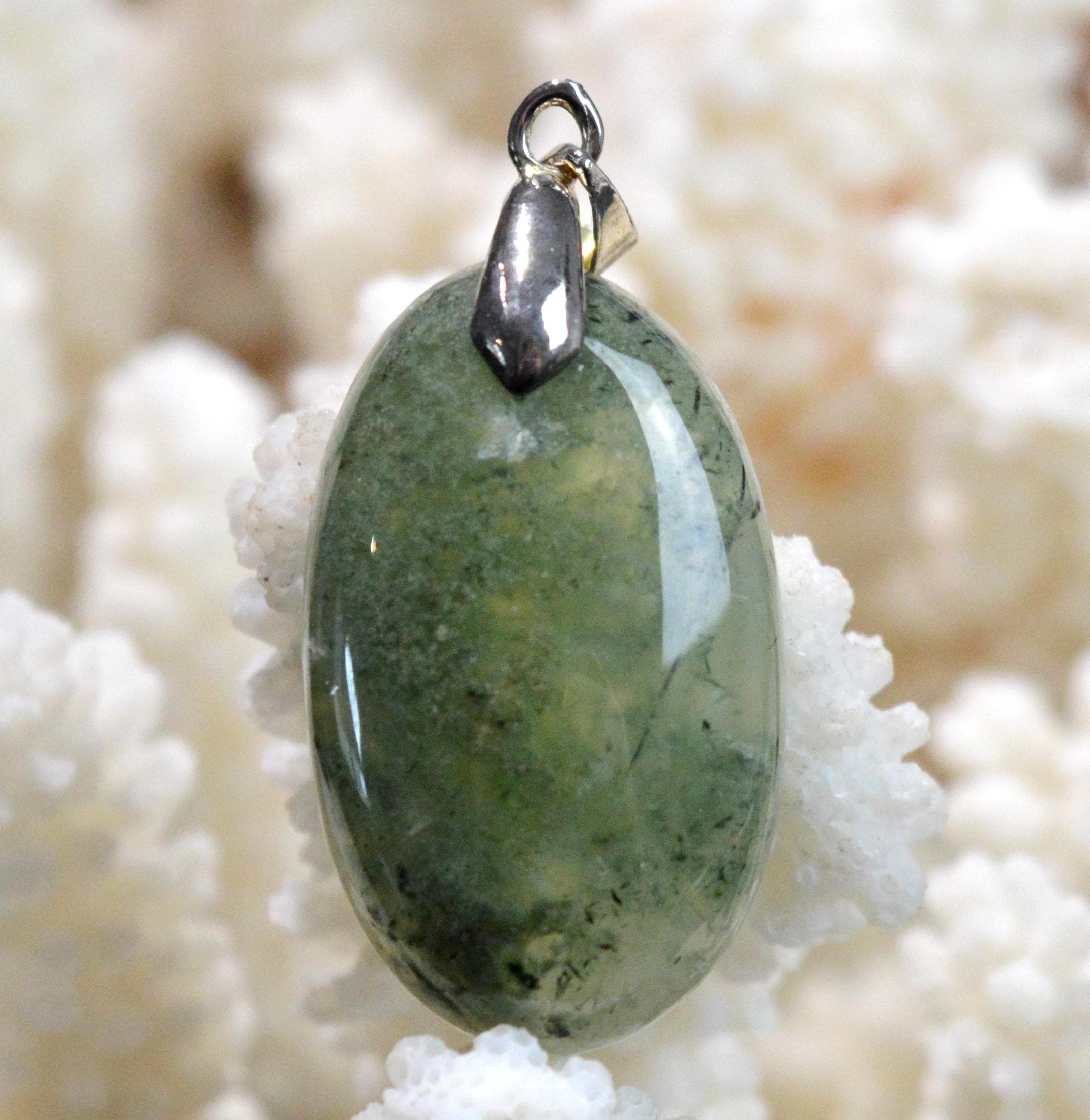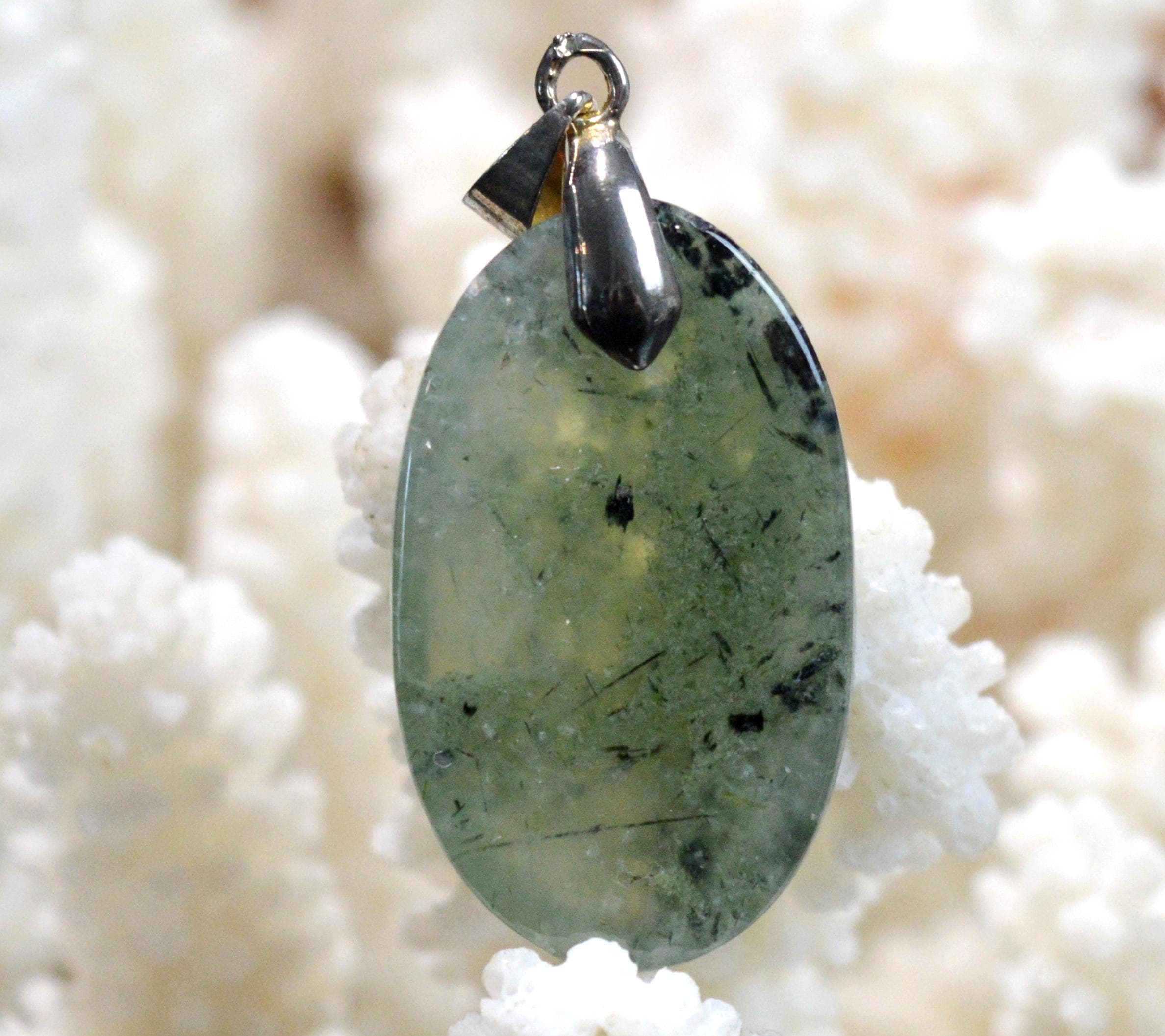 Prehnite is a gentle and loving stone. It can act as an "emotional rescuer," helping us to immediately stop identifying with emotional hurts and preventing minor sorrows from turning into insurmountable difficulties. It soothes restlessness and nervousness, which is very helpful in cases of hyperactivity. It helps us live in the present moment and fight our fears and phobias.