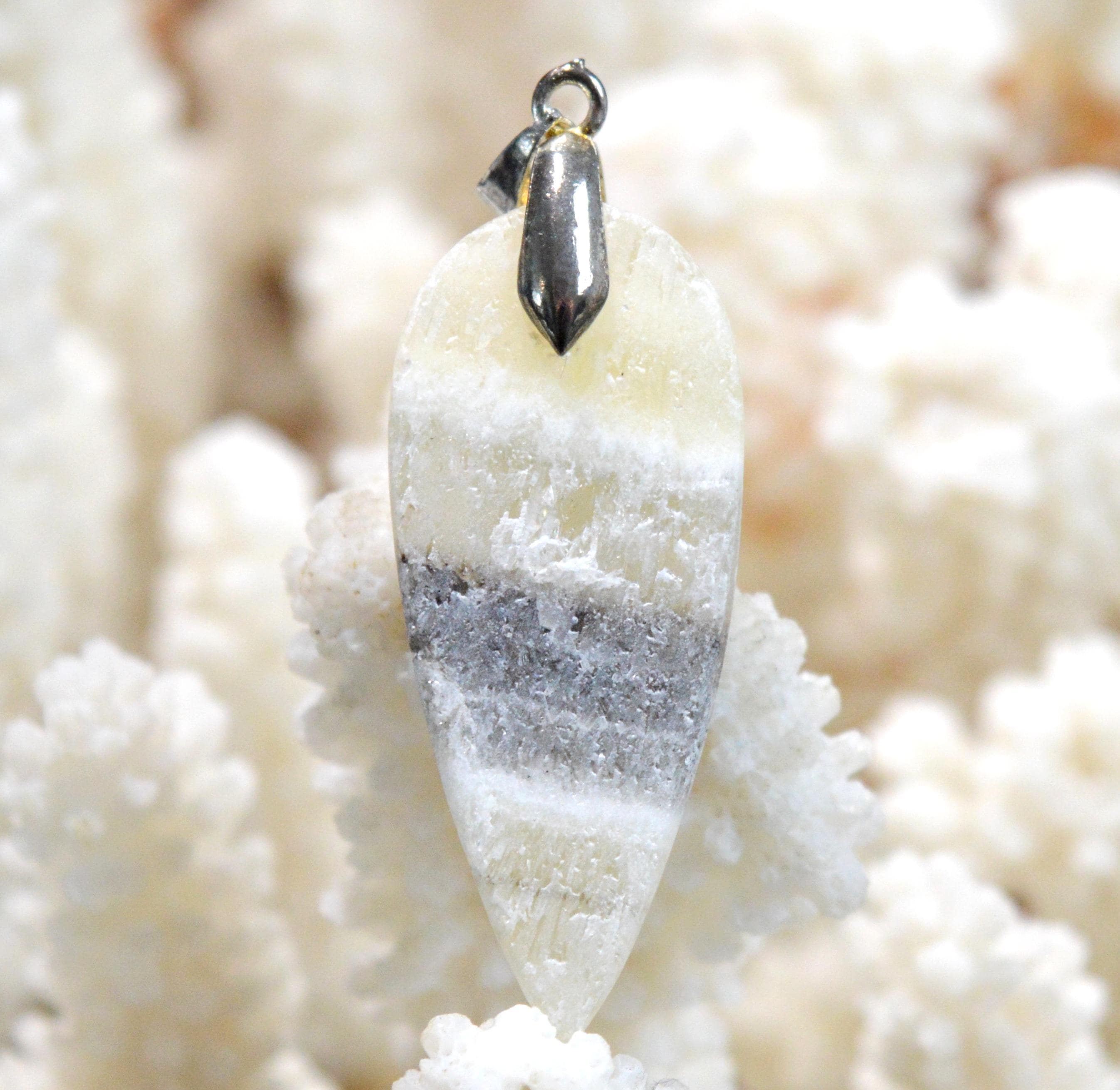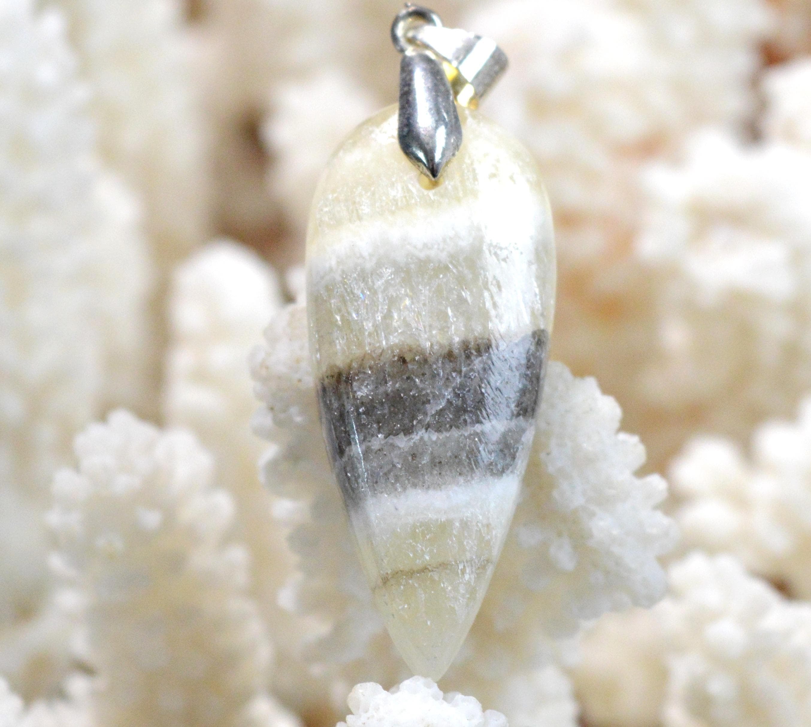 Zebra calcite from Chihuahua in Mexico helps reduce stress and gently clears blockages.