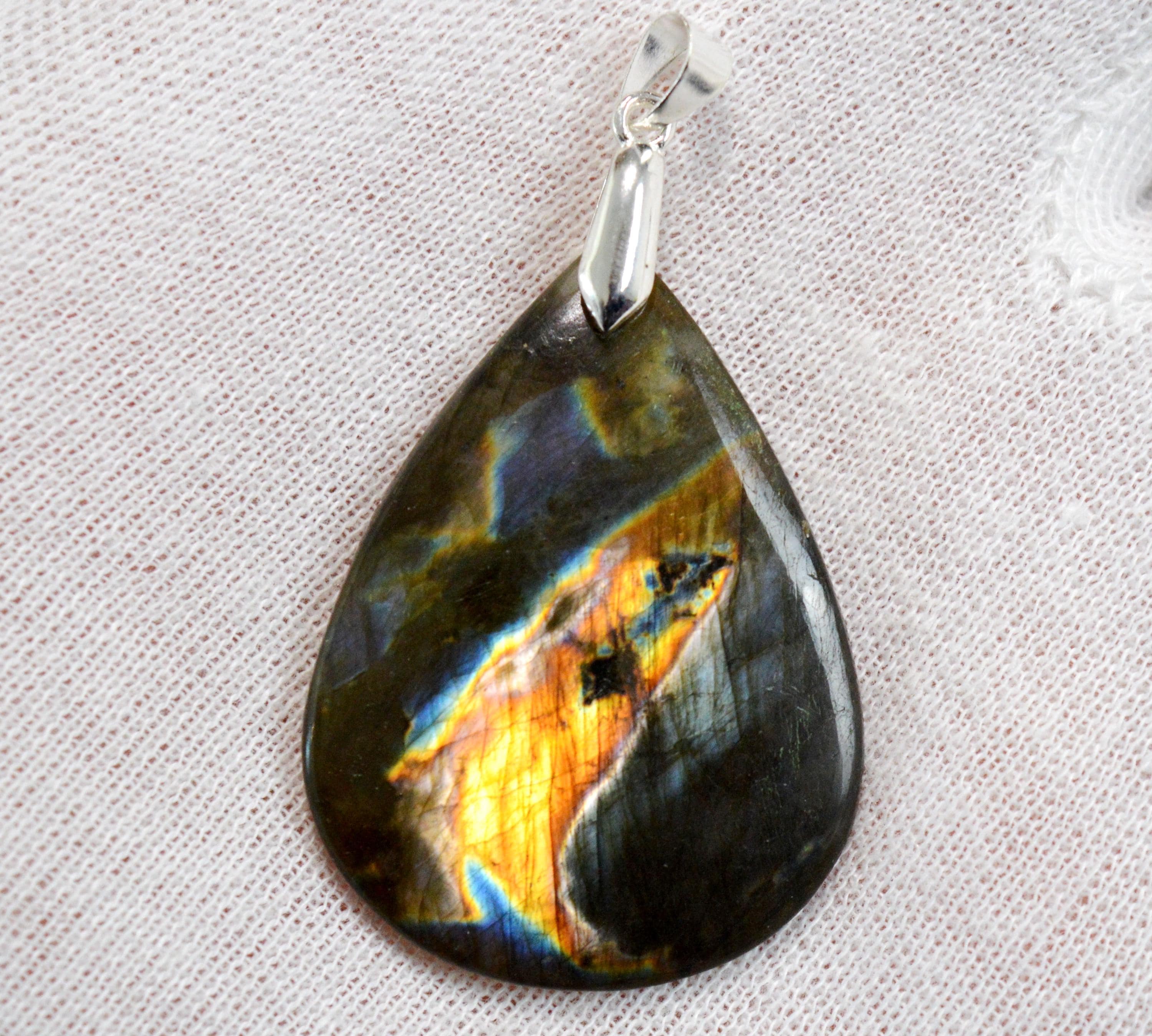 Wearing labradorite jewelry, such as a pendant, against the skin enhances one's attractiveness to others. This stone is therefore highly recommended for those suffering from loneliness. Labradorite is known for its regenerative properties, both physically and mentally, following periods of exhaustion. The aura thus regains harmony and balance through the stone.