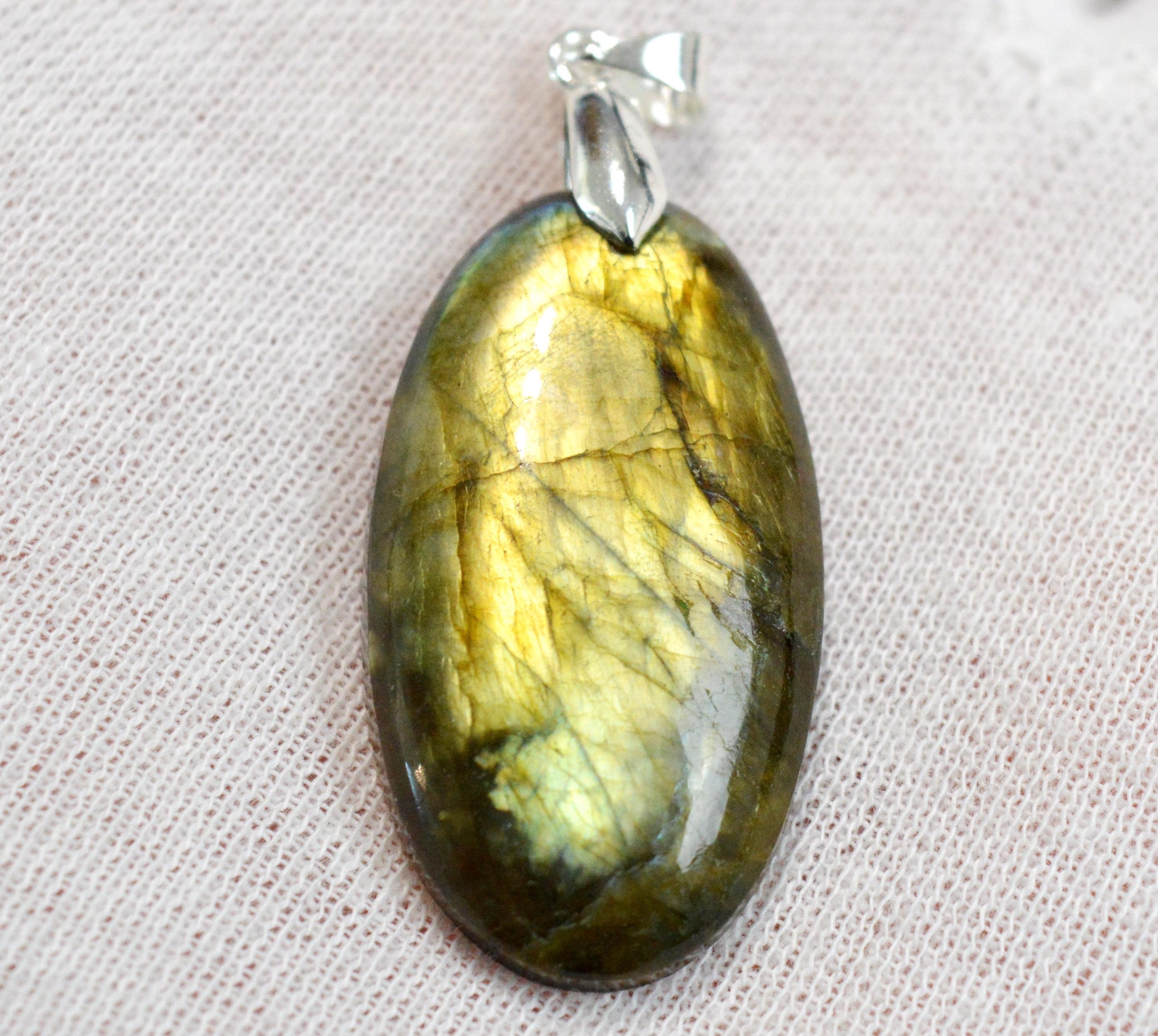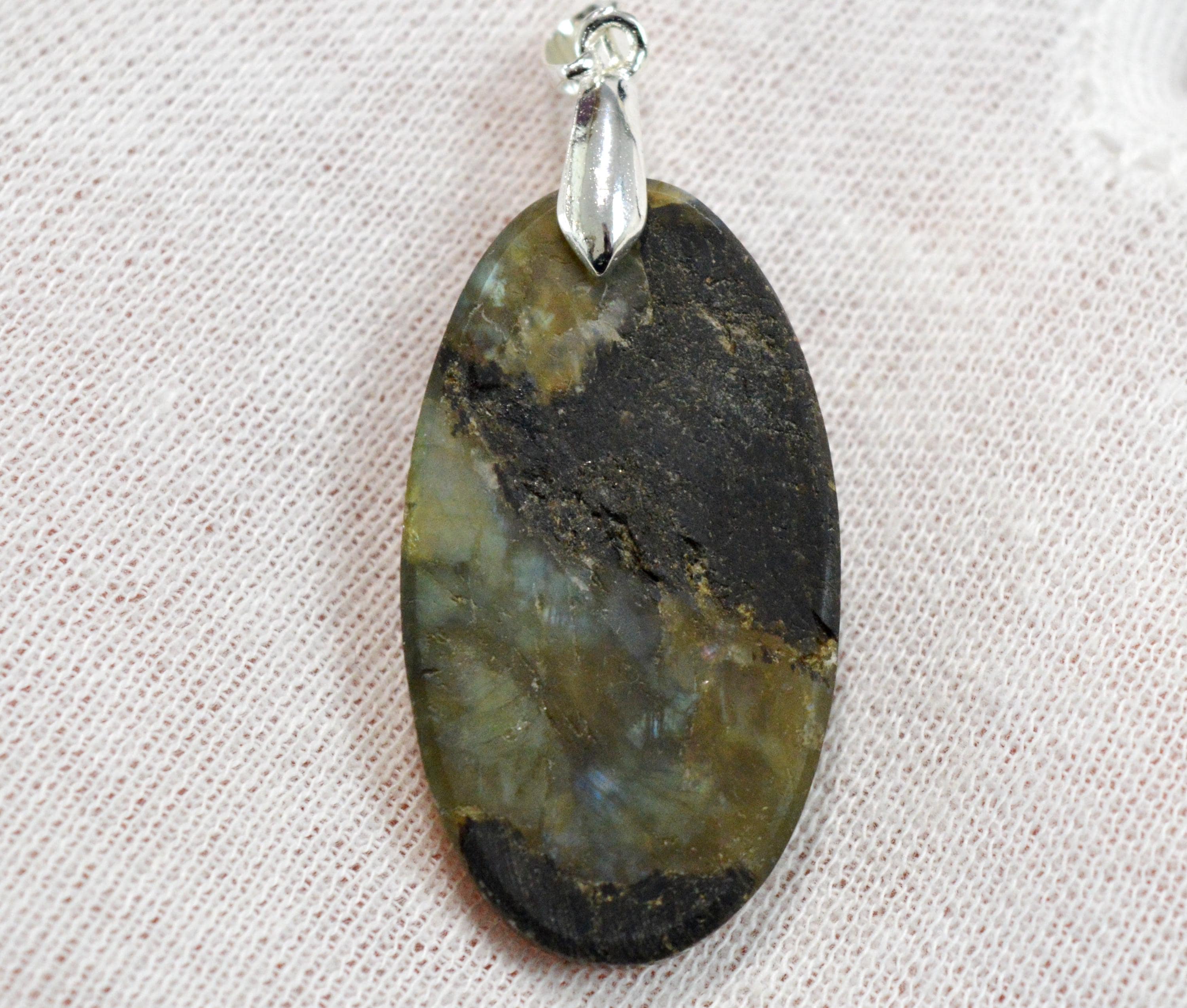 Wearing labradorite jewelry, such as a pendant, against the skin enhances one's attractiveness to others. This stone is therefore highly recommended for those suffering from loneliness. Labradorite is known for its regenerative properties, both physically and mentally, following periods of exhaustion. The aura thus regains harmony and balance through the stone.