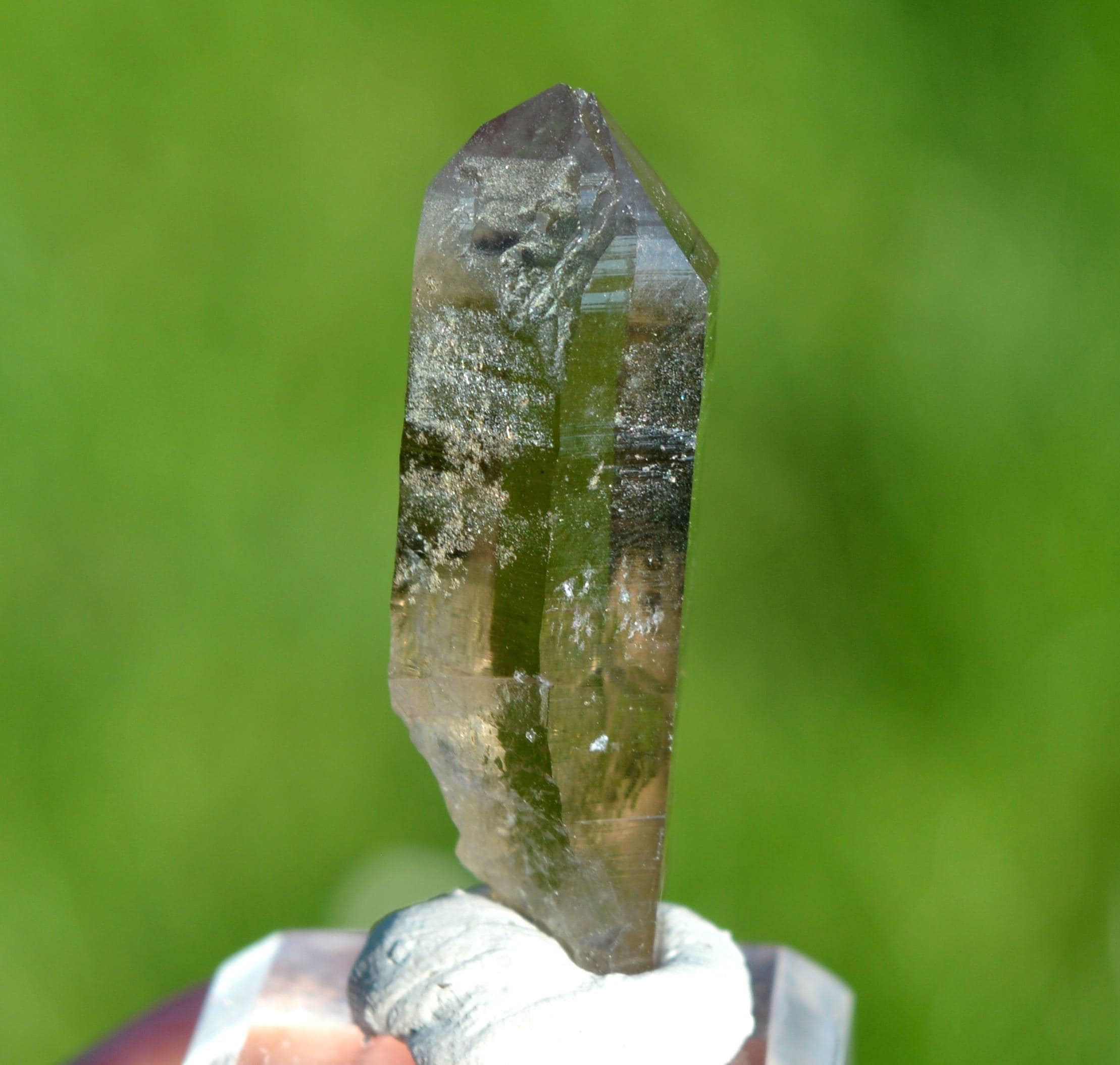 Smoky quartz with traces of chlorite.