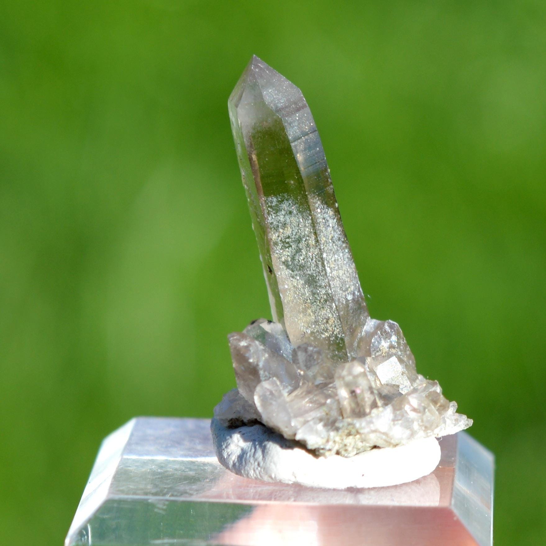 Smoky quartz with traces of chlorite.