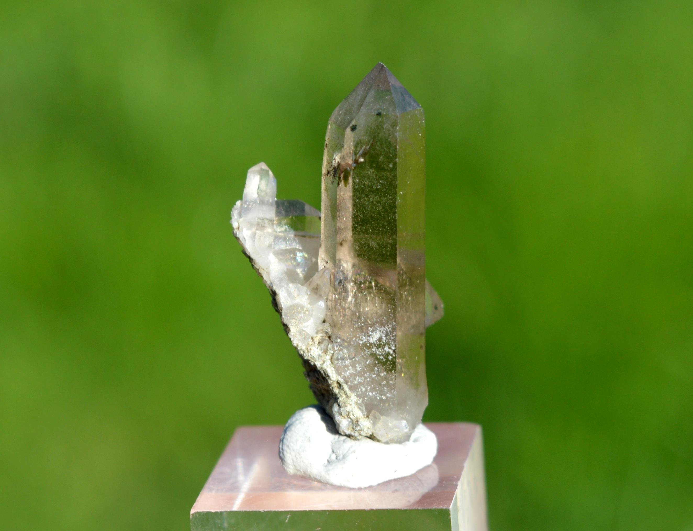Smoky quartz with traces of chlorite.