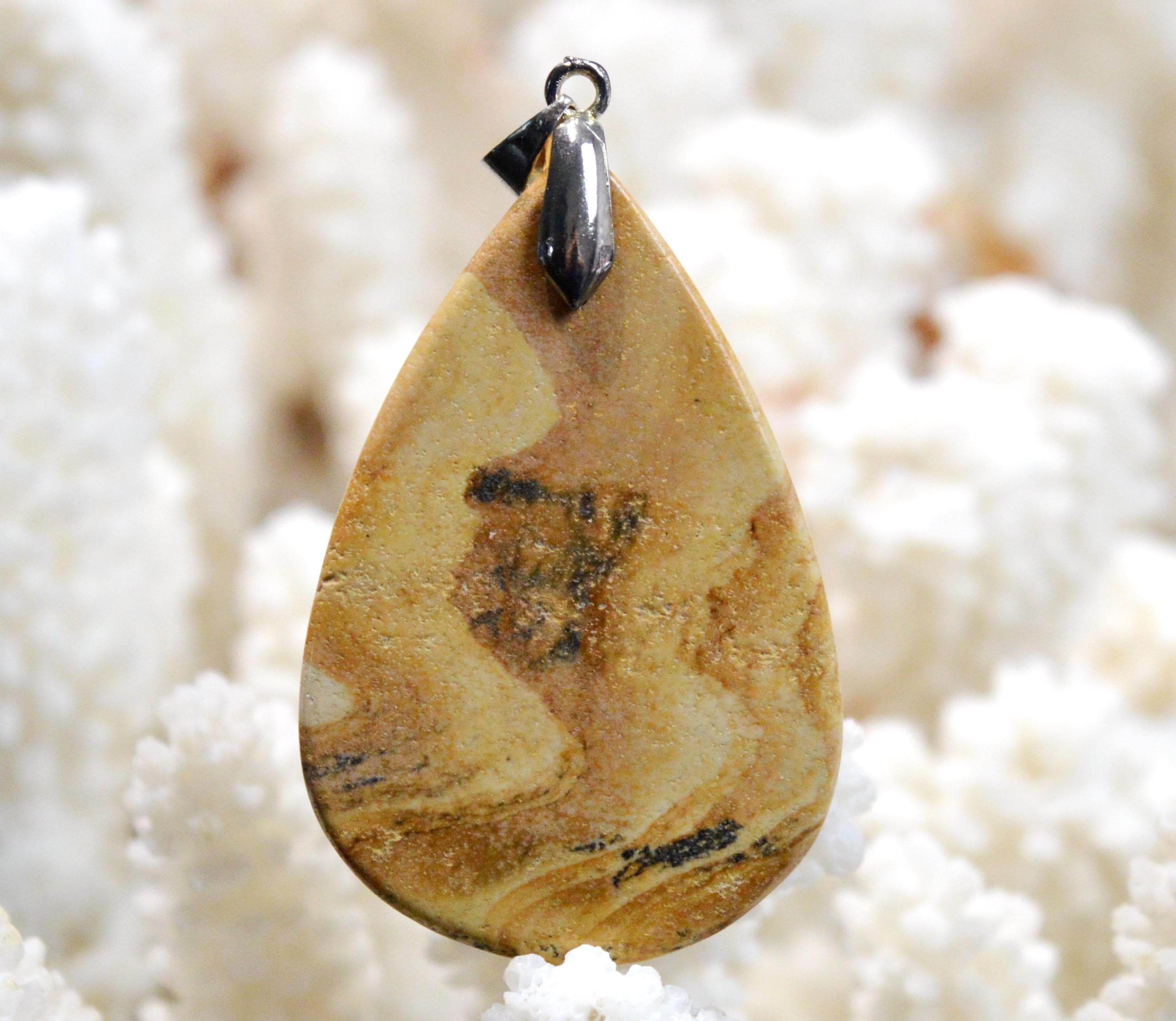 Landscape jasper is said to offer effective protection against negative energies. It is believed to promote emotional stability and give meaning to our actions. Worn as jewelry, jasper is thought to act as a mental shield, keeping negative energies at bay and preventing them from hindering the mind. Jasper is also believed to sharpen willpower and help one better face challenges.