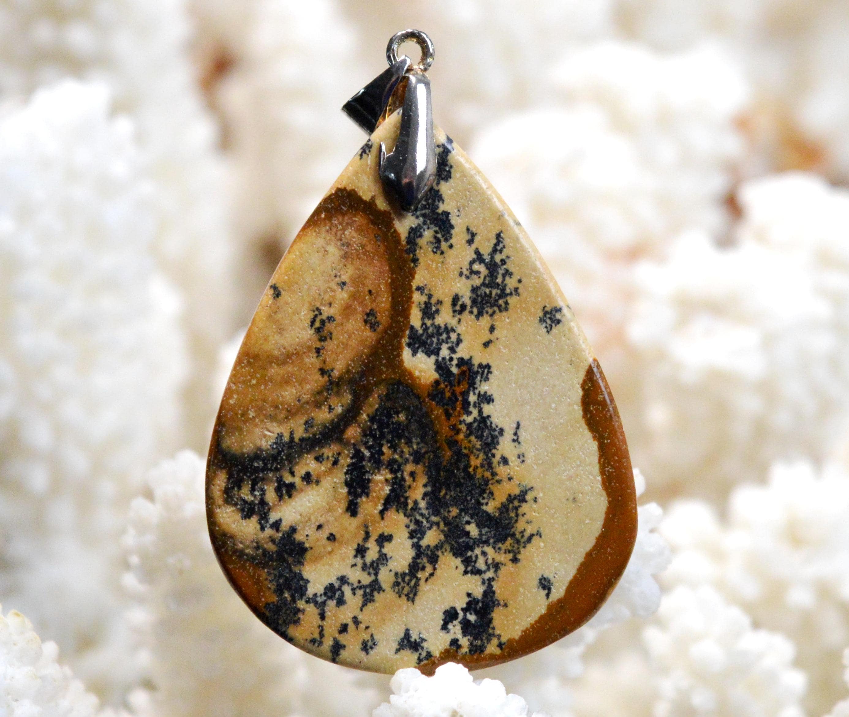 Landscape jasper is said to offer effective protection against negative energies. It is believed to promote emotional stability and give meaning to our actions. Worn as jewelry, jasper is thought to act as a mental shield, keeping negative energies at bay and preventing them from hindering the mind. Jasper is also believed to sharpen willpower and help one better face challenges.