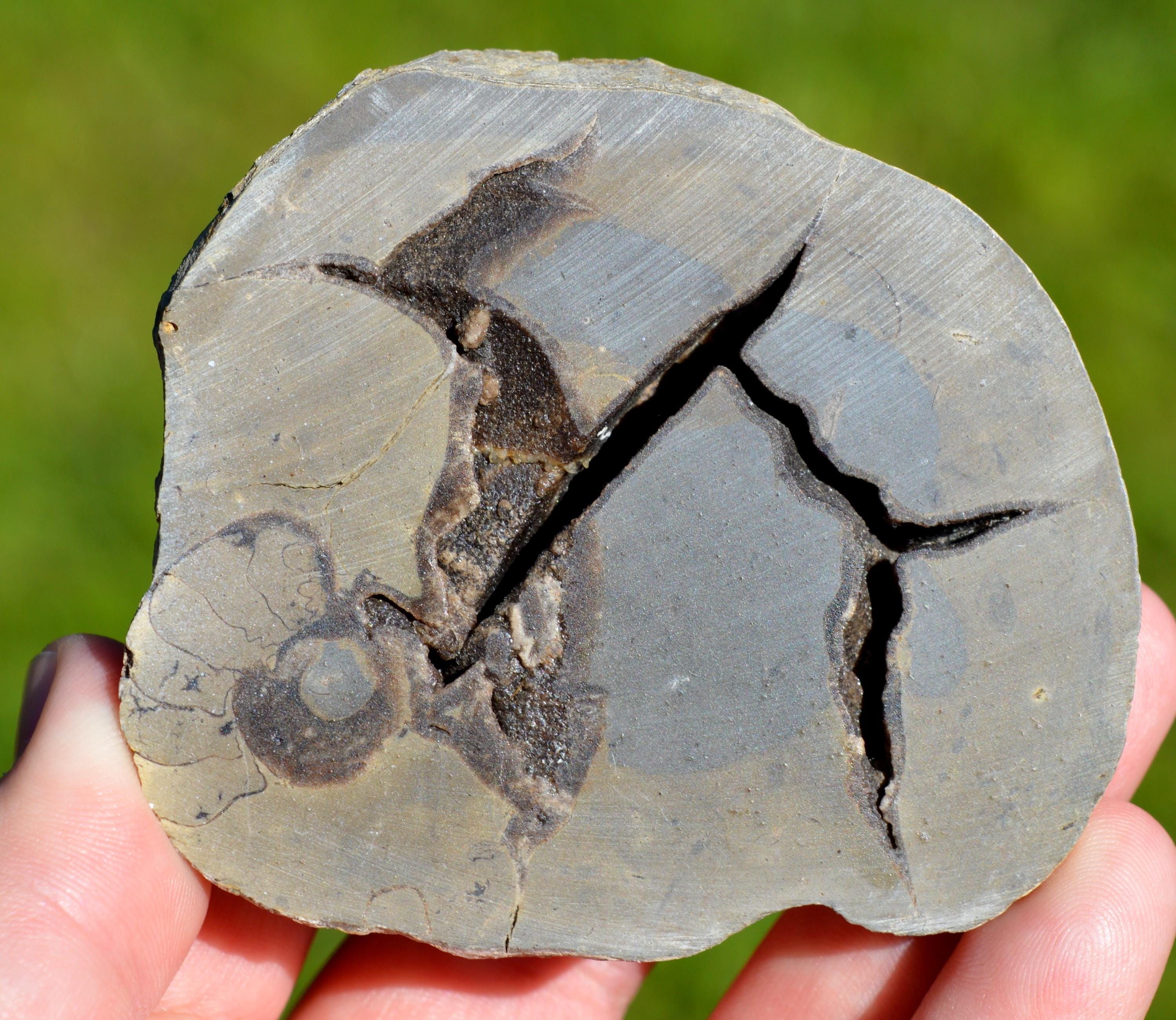 Septaria, sawn module with presence of ammonite (Oxfordian - 161.5 ± 1.0 Ma to 154.8 ± 0.8 Ma)