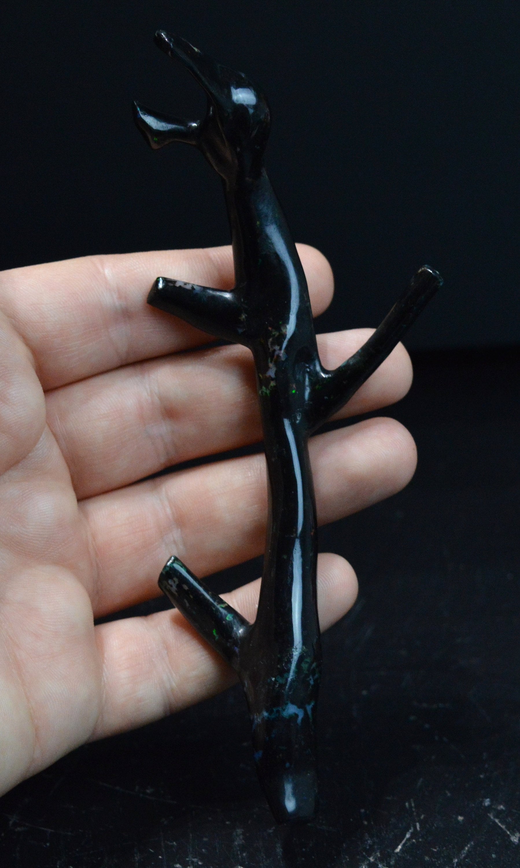 Petrified wood with opal, whole branch polished, very rare.